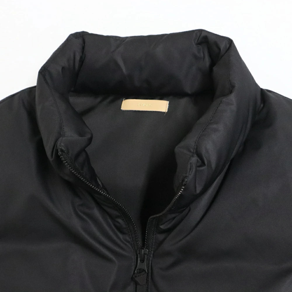 首元まで詰められたダウンは軽量ながらも保温性抜群。ゆったりとしたシルエットと広い袖口はボリュームのあるトップスでも重ね着ができます。