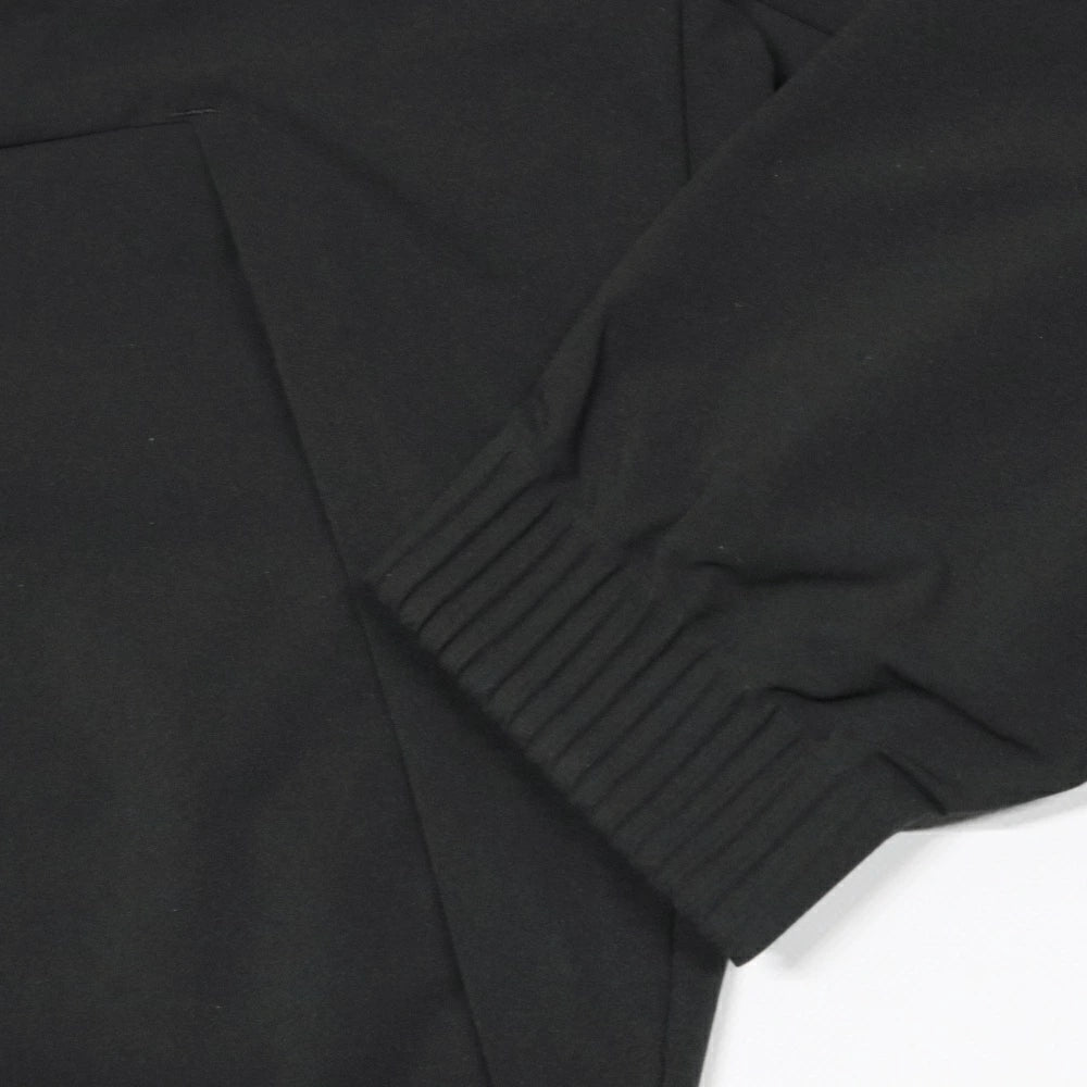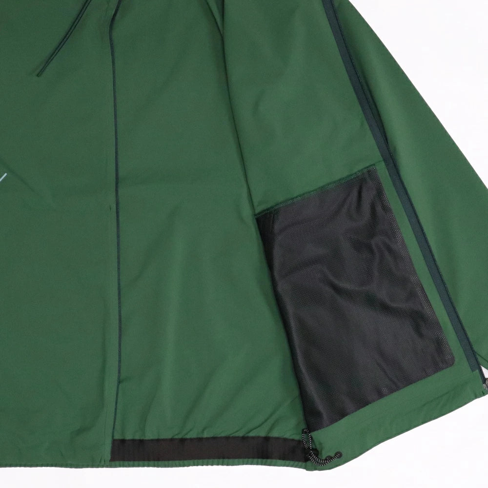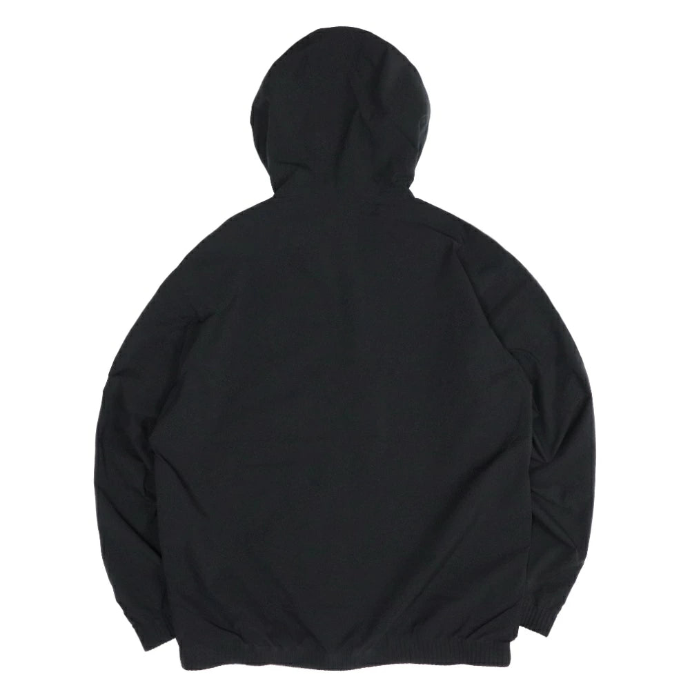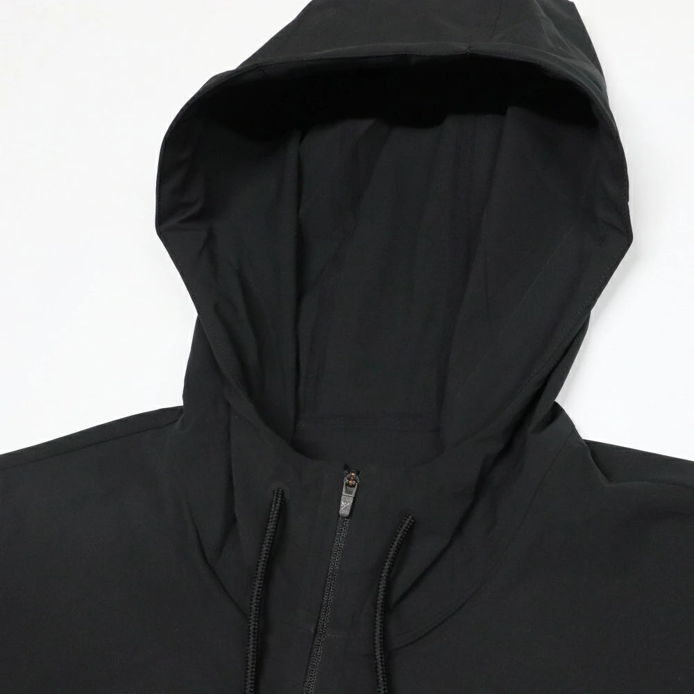 ストレッチ性のある布帛素材を使用したフード付きジャケット。