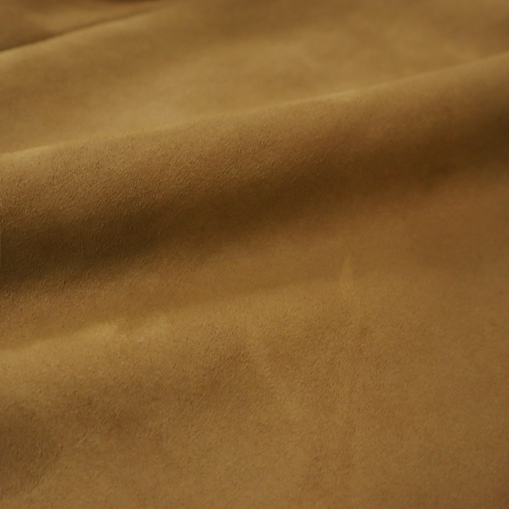 巻きスカートのようなデザインのロングスカート。スウェード調の生地の風合いが季節のコクを出してくれます。天然のスエードのような素材感で滑らかく上品な風合いを持っています。