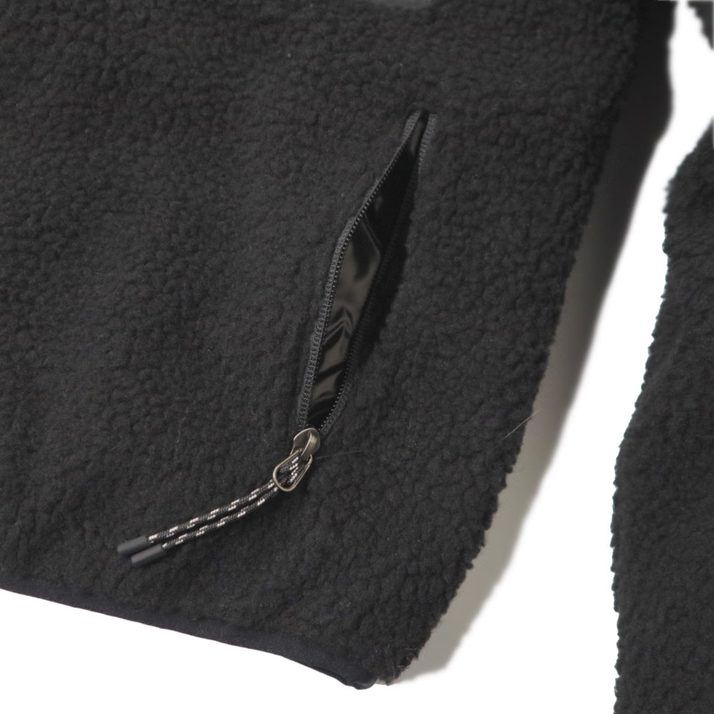 表側には、ナイロンリップストップ素材に保温性の高い800FPダウンを使用、裏側には、厚みのあるボア素材を組み合わせました。